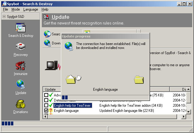 Spybot will download and install updates. In the future, you can also download updates by going to the Update tab.