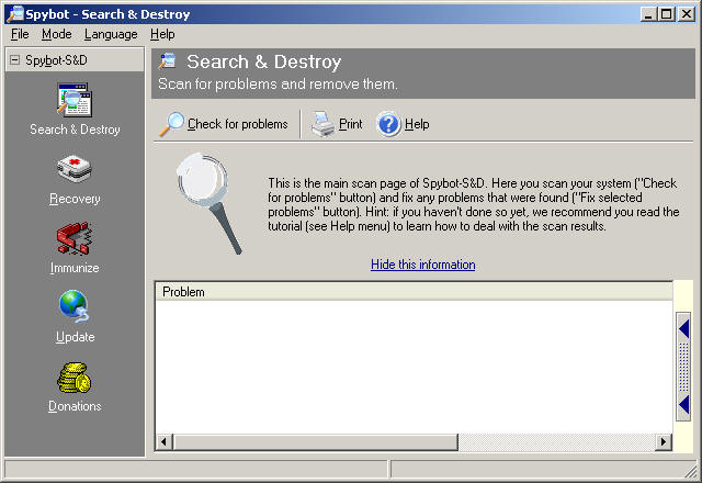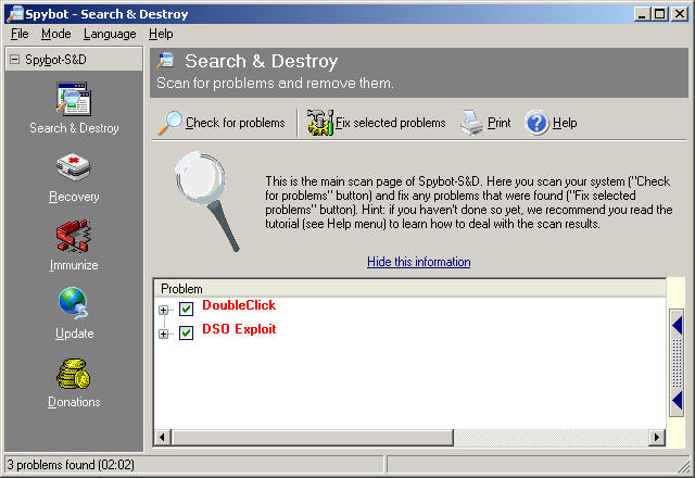 Be sure to run and update Spybot every 30 days. Special Notes: